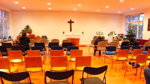 Mit dem Auftreten von Corona 2020 und den sich daraus ergebenden Anforderungen an Abstände und Luftaustausch konnte die „Winterkirche“ nicht eingerichtet werden. Damit wir auch im Winter in der Kirche weiter die Hl. Messe feiern konnten, musste eine Heizung möglich sein. Die erneute Nutzung der Luftheizung hätte aber sicher noch höhere Gaspreise bedeutet. Außerdem wäre auch eine Reparatur der Heizung erforderlich gewesen. Deshalb wurde die Sitzheizung installiert, die wir auch heute noch nutzen. In den letzten (relativ warmen) Wintern reichte diese Heizung für unsere Hl. Messen noch (!) gerade aus, während unsere syrischen Gäste bereits im letzten Jahr für ihre Gottesdienste in den Saal gingen. Auch die Dienstagsmesse fand nach der Weihnachtszeit bis März im Saal statt.